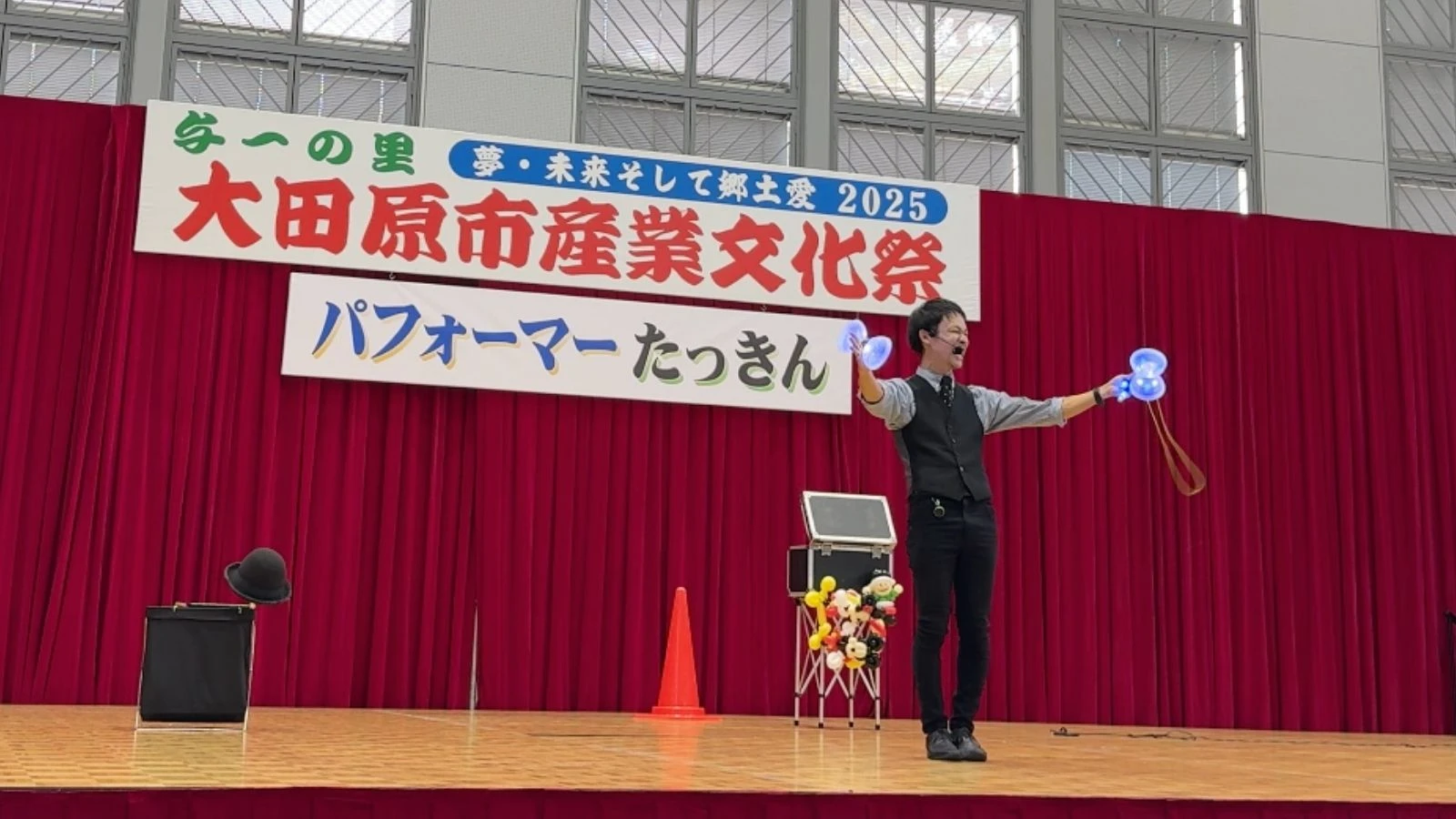2025年11月2日(日)に開催されました第37回与一の里大田原市産業文化祭でのパフォーマーたっきんの出演報告の記事です。