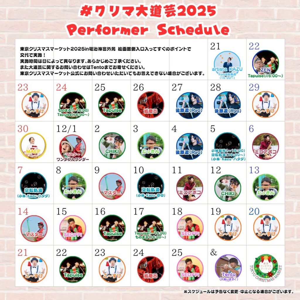 東京クリスマスマーケット2025内で開催されるクリマ大道芸2025の出演についてのご紹介でした。