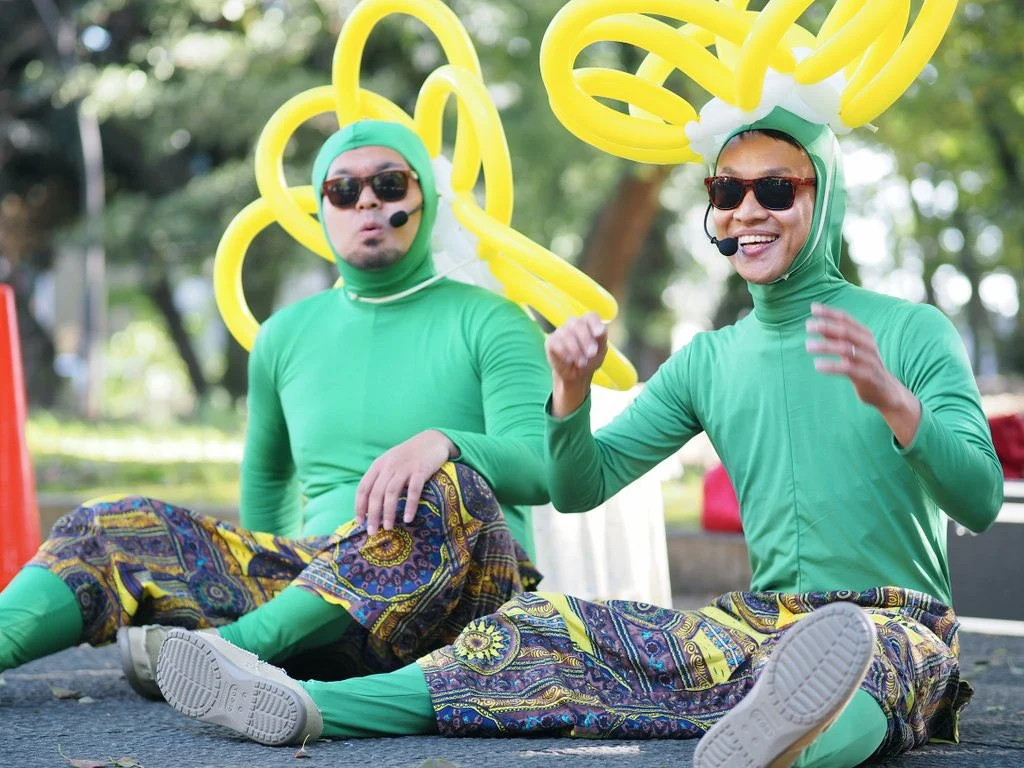 コーンを使ったジャグリング・バランス芸・マジック・一発ギャグを組み合わせた「コーンと顔面がすごいショー」は笑いと驚きが止まりません。