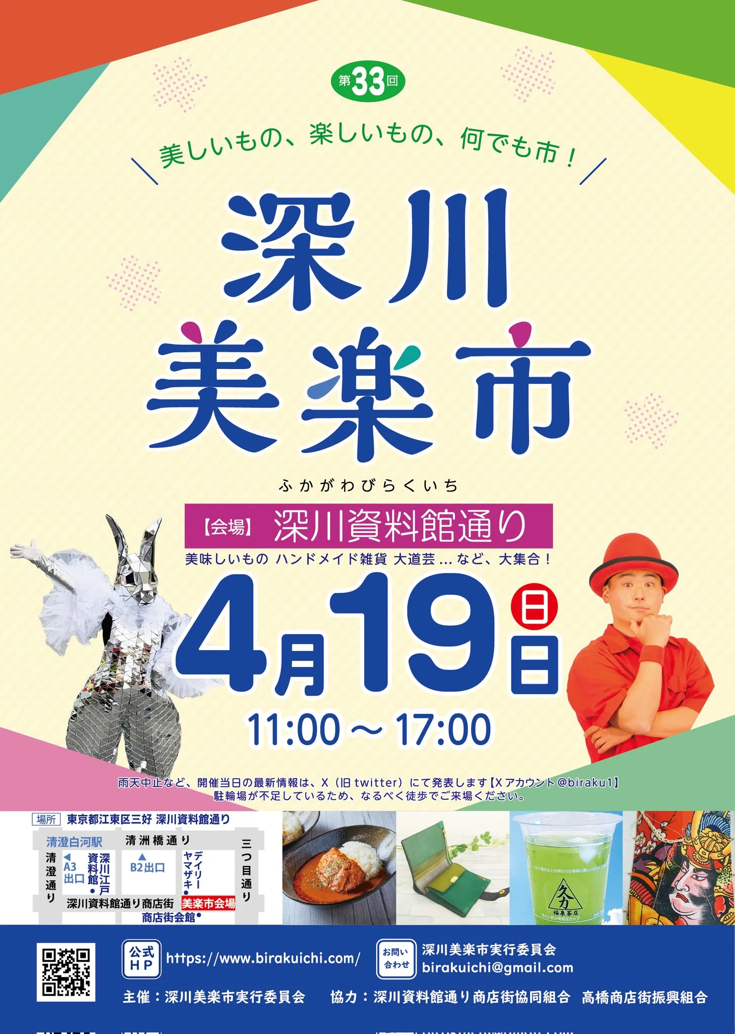清澄庭園や東京都現代美術館、深川江戸資料館などの観光スポットも近く、地元の方にも遠方からの来場者にも毎回たくさんの人でにぎわう大人気のイベントです。