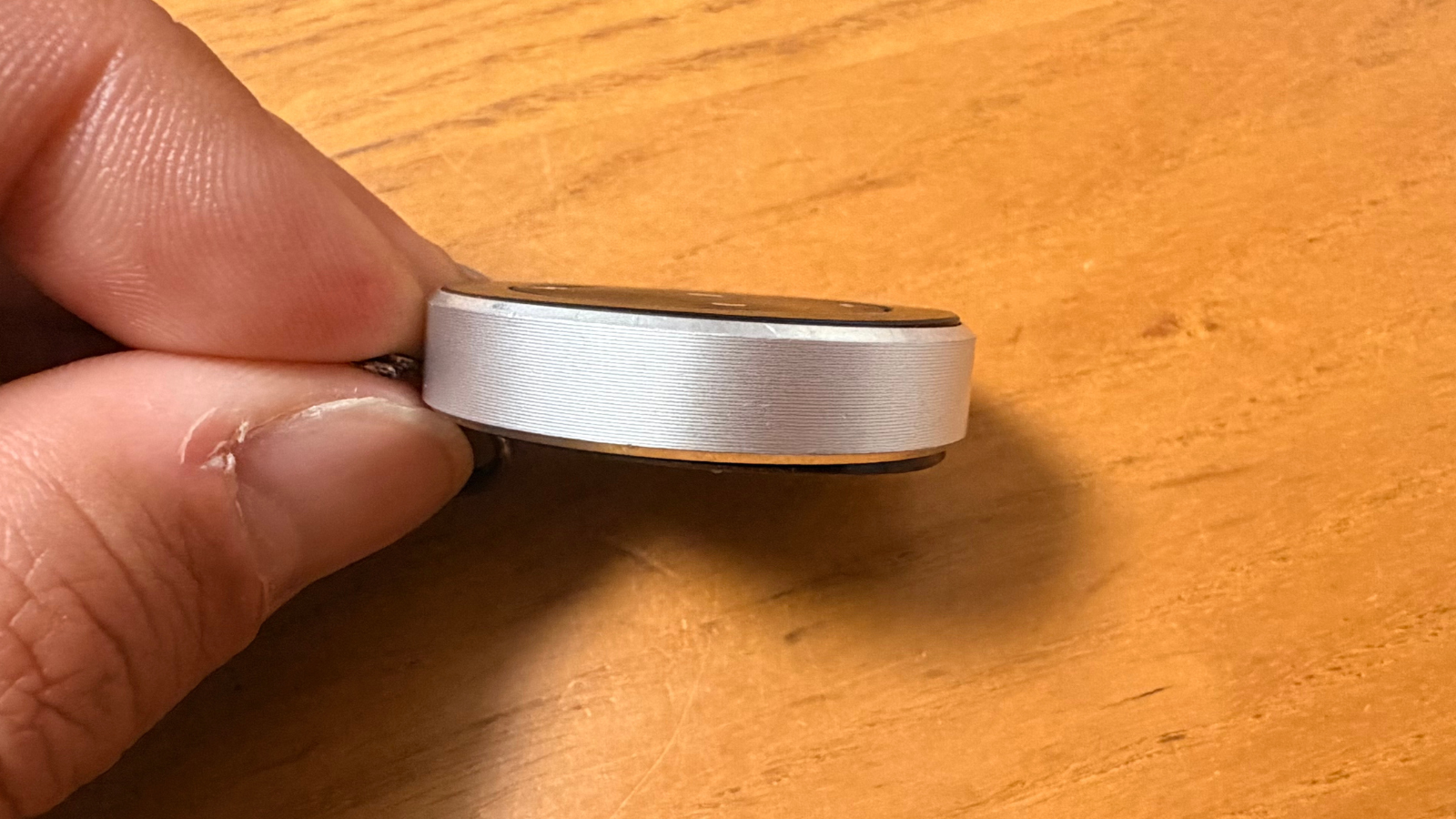 直径約3.6cm、重さはわずか10g程度。500円玉より一回り大きい程度のサイズです。